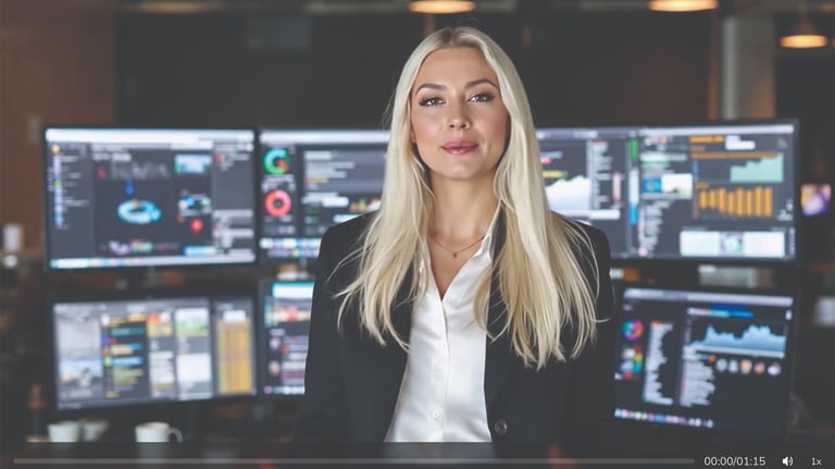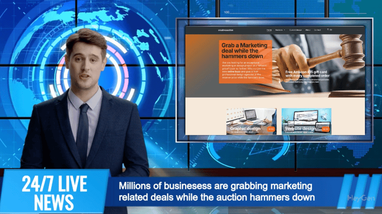 A professional real-life avatar presenter showcasing your business or product as a dynamic breaking news item. You can use the final video on all your social media platforms as great exposure for your business. Stand out from the crowd with this exciting AI format.